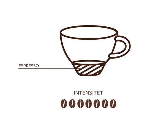 Nedan går vi igenom 12 klassiker på kaffekortet och rangordnar styrkan på en skala från ett till sju, där sju är den med högt intensitet. Det ger dig och dina medarbetare ett bra underlag för att erbjuda restaurangens, kaféets och kaffebarens gäster en kaffeupplevelse i särklass samt ge goda råd till kunder som ännu inte hittat sin favoritdryck bland de olika kaffesorterna.
