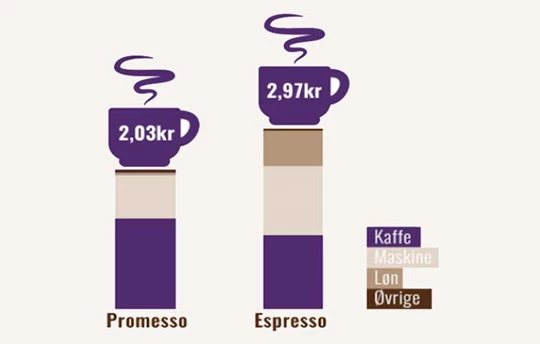 När du räknar du priset per kopp inklusive parametrar som kaffe, maskin och utgifter för rengöring, underhåll och påfyllning får du en bättre överblick över de verkliga kostnaderna.